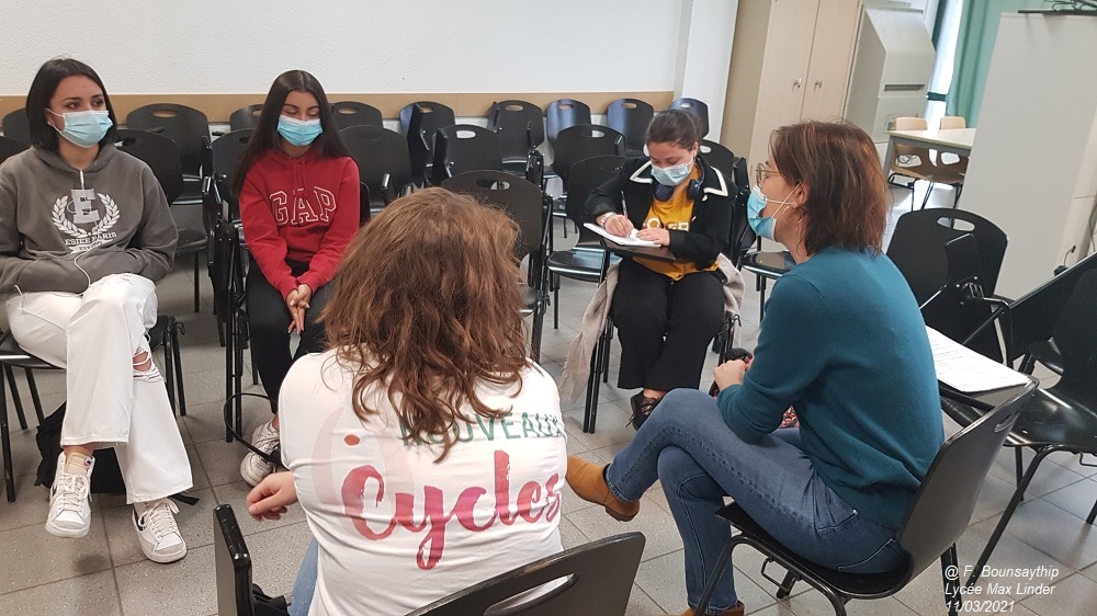 Dans le volet santé du projet EDD « lycée Max Linder, de la transition à l’action », des échanges autour de la santé des femmes, des règles, des moyens de contraception, la précarité menstruelle, la sexualité, la relation amoureuse.